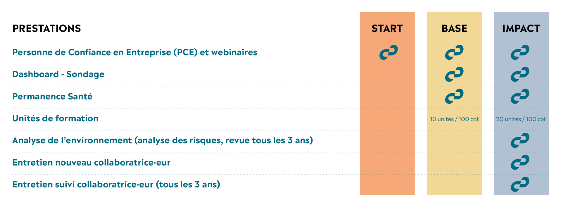 - En plus du modèle START, ce modèle inclut une Permanence Santé (téléphonique) dédiée aux collaboratrices et collaborateurs.